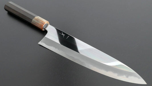 Tanaka Kyuzo Blue #1 Spiegel Gyuto 240mm Taihei Ebenholzgriff