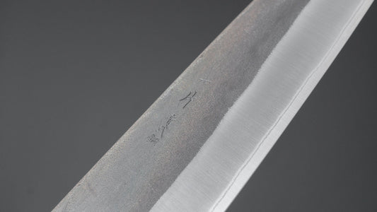 Tanaka Kyuzo Blau #1 Migaki Kiritsuke Gyuto 240mm Yakusugi Zedernholzgriff (Typ S)