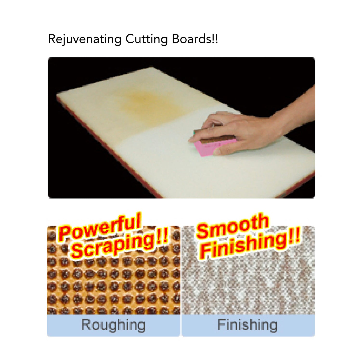 Hasegawa cutting board scraper is proud of its outstanding scraping power. It erases tough spots, yellowing from use, mold and mildews, grooves and feathering from the surface of your cutting boards.