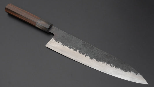 Isamitsu Blue Super Stainless Clad Kurouchi Gyuto 240mm Taihei Makassar Ebony Kahva