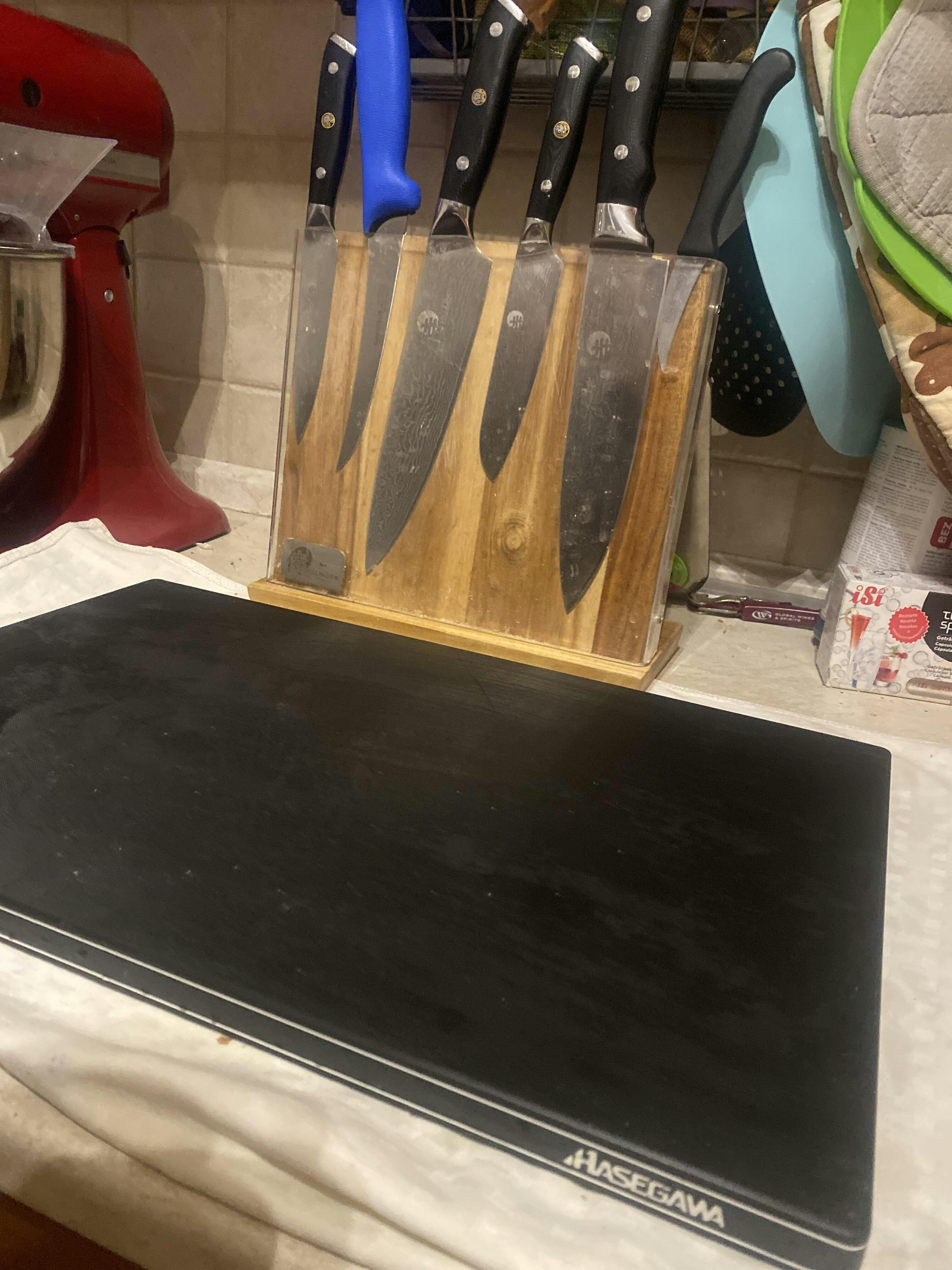 È un tagliere di colore nero con un nucleo in legno interno, che mostra chiaramente gli ingredienti alimentari. Potrebbe essere utile utilizzarlo con ingredienti come carote o erbe che colorano rapidamente i taglieri. Inoltre, è ottimo per ristoranti di alta classe che hanno poca illuminazione. Mette in risalto il lavoro dello chef!